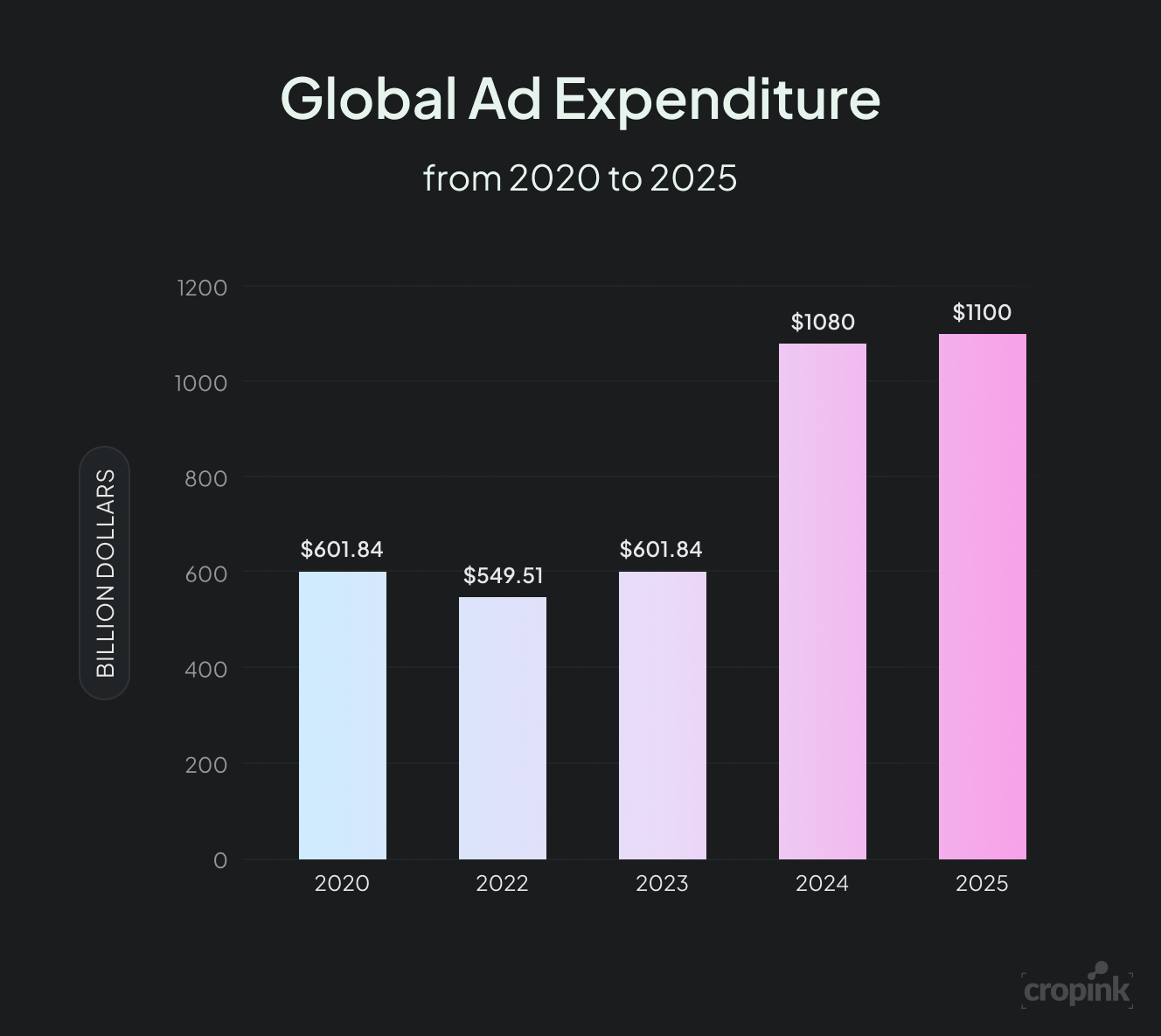 Global ad spend is projected to reach $1.1 trillion by the end of 2025.