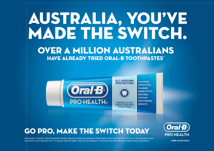 It’s the same logic as the cigarette ad because it shows you that many people (over a million) use the toothpaste. Therefore, not using Oral-B means you’ll miss out on a lot.